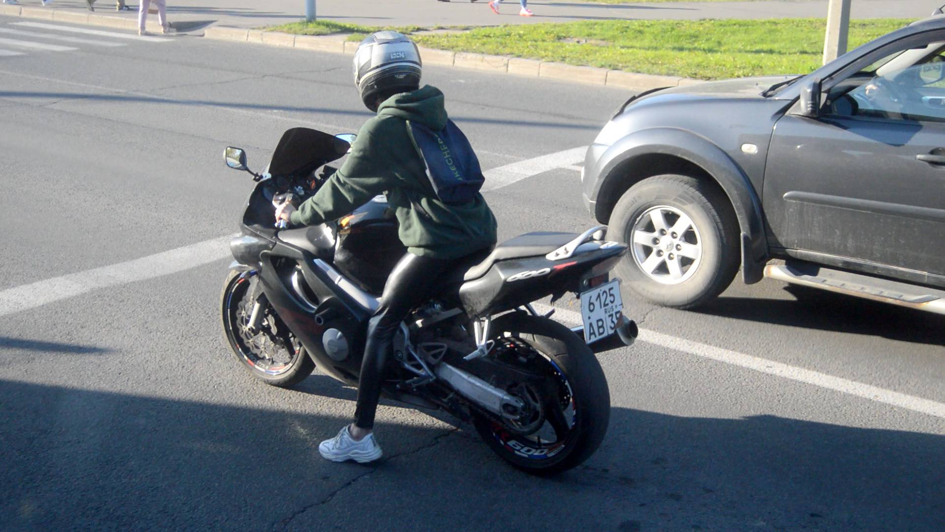 Кожаная байкерша в Череповце