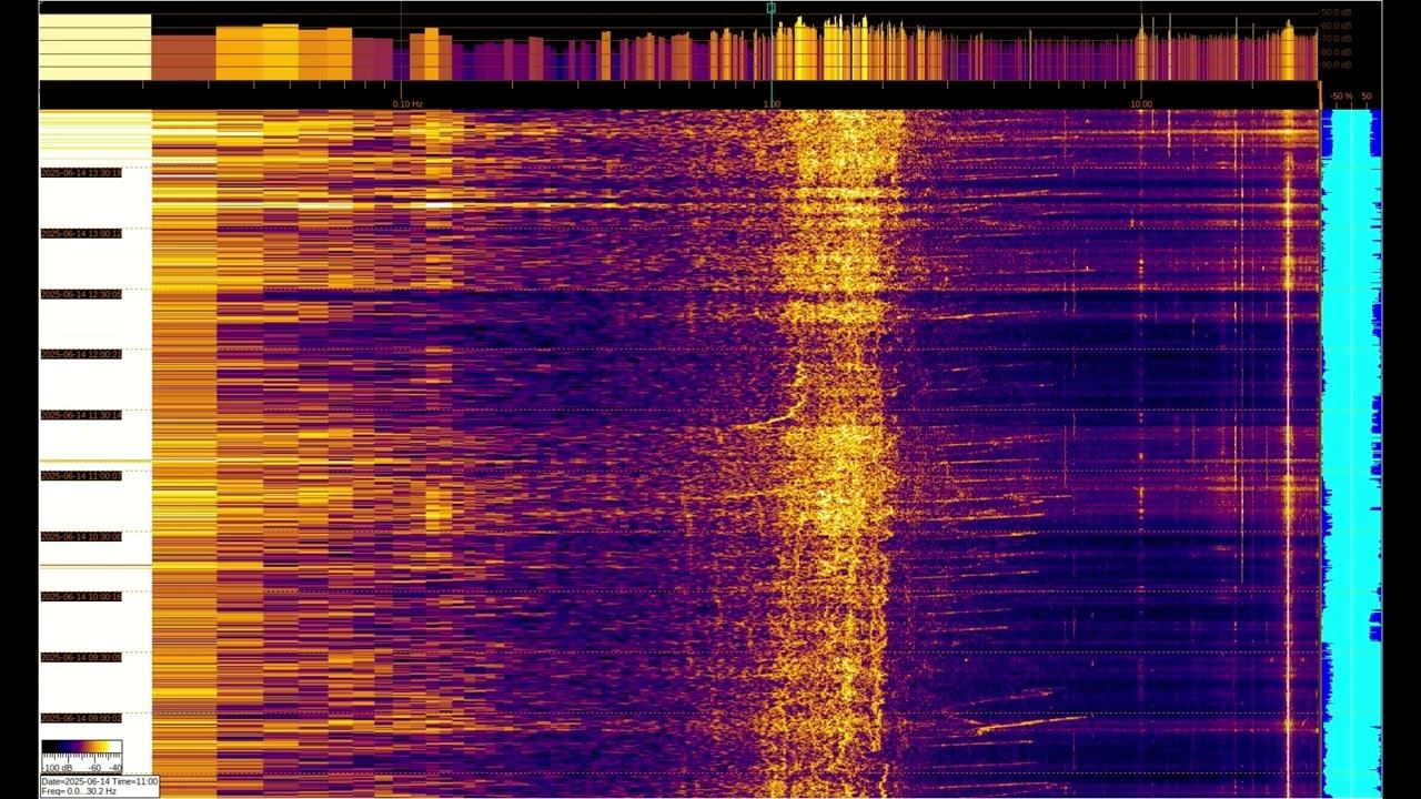 Геомагнитная активность обычно на частотах до 5 Гц и зависит от Солнечной активности. На более высоких частотах спектра могут присутствовать сигналы сверхдальней связи и др. Детали в этих плейлистах: EMF monitor https://youtube.com/playlist?list=PLiRg2YCbXcwn41BHqADKVBep_TgVq6XUN Очень Низкая Частота ~ Very Low Frequency https://youtube.com/playlist?list=PLiRg2YCbXcwnp5DxM4PnSs7k_Rnypaqek SIGNALS IN THE GROUND https://youtube.com/playlist?list=PLiRg2YCbXcwl6f3Bf5arHbGSOCNE5U71O поддержать канал: 8-999-654-93-44