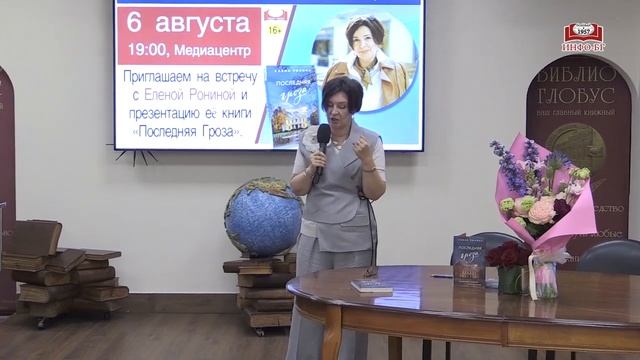 Представляем запись встречи с Еленой Рониной и презентации её книги «Последняя Гроза». Елена - автор русской современной прозы, драматург, блоггер и неутомимая путешественница. Гуляя по московским улочкам и проходя мимо старинных усадеб, вы когда-нибудь задумывались о том, что происходит за их заборами? Как устроен быт в этих домах? Какие люди там живут? Новая книга Елены Рониной «Последняя гроза» — это история непростой семьи. Роман о людях, которые раз за разом сталкиваются с болью и разочарованием, но, несмотря на это, ищут и обретают любовь. --- «Библио-Глобус» – старейший книжный магазин в самом центре Москвы и один из крупнейших в Европе. У нас вы можете найти книгу на любой вкус из 200 тысяч наименований. Мы предлагаем широкий выбор изданий на более чем тридцати иностранных языках. Ежедневно мы проводим встречи с известными авторами, актерами и спортсменами, организуем музыкальные квартирники и детские мероприятия, предоставляем площадку для театральных постановок и много другого. Все права на настоящие аудио-, видеоматериалы защищены и охраняются законом. Использование материалов без согласия ООО Торговый Дом «БИБЛИО-ГЛОБУС» не допускается. Наш сайт: http://www.biblio-globus.ru/ Мы в социальных сетях: VK: https://vk.com/biblioglobus_msk Telegram: https://t.me/biblioglobus_1 С любовью, Ваш "Библио-Глобус"