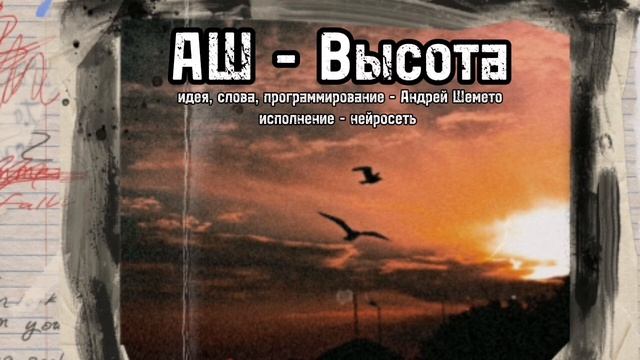 слова, идея, программирование - Андрей Шемето музыка и исполнение - нейросеть suno ai Скачать полную версию песни можно в моём телеграме https://t.me/pesni_ash Ищи меня здесь Телеграм: https://t.me/shemetostihi Inst: @andrei_shemeto VK: https://vk.com/andrei_shemeto Поддержать канал донатом: https://www.donationalerts.com/r/shemeto мои стихи тут: https://stihi.ru/avtor/tusowschick тексты и аккорды всех моих песен: https://mychords.net/user/849918/pesni/ Принимаю заказы на стихи, тексты песен или индивидуальные поздравления к любому празднику на заказ. ВЫСОТА Что впереди? То же, что сзади: Вечная пыль. Снова жара. А что остаётся, если наш садик Утром сровняют с землёй трактора, Если шалаш, который я строил, Ты подожгла ночью тайком. Сотни друзей, преданных – трое. Вечный диагноз – слыть дураком. Лопнули струны, время – кругами, Наши надежды – пища для мух. Все наши всходы топчут ногами. В слабое тело просится дух. Жизнь докатилась до крайней отметки. Градус кипения плавит мечту. Выжжено поле, сломаны ветки. Нам бы, как раньше, набрать высоту. Что остаётся, если молчанье – Верная тактика в этом бою? Своры поэтов кормят мычаньем, Грязью мечту поливая твою. А что остаётся, если злословье Пулю пускает прямо в висок, А большинство вытирает любовью, Как полотенцем, рабочий лобок? Лопнули струны, время – кругами, Наши надежды – пища для мух. Все наши всходы топчут ногами. В слабое тело просится дух. Жизнь докатилась до крайней отметки. Градус кипения плавит мечту. Выжжено поле, сломаны ветки. Нам бы, как раньше, набрать высоту. Что остаётся, если под кожу От безысходности лезет игла? Хмурые лица, пьяные рожи – Самое время свернуть удила. А что остаётся, если за душу С самого детства ладят торги? Или заборы мнимые рушить Или не сбиться с нужной ноги. Лопнули струны, время – кругами, Наши надежды – пища для мух. Все наши всходы топчут ногами. В слабое тело просится дух. Жизнь докатилась до крайней отметки. Градус кипения плавит мечту. Выжжено поле, сломаны ветки. 15.04.2010 (с) Андрей Шемето