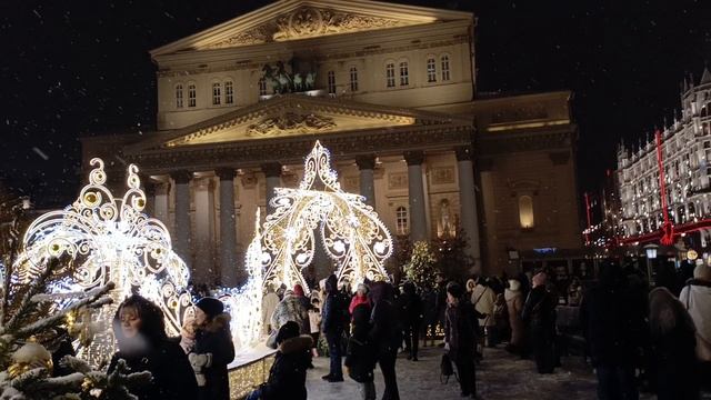 город Москва - район Большой театр, много народу, красивое новогоднее оформление...