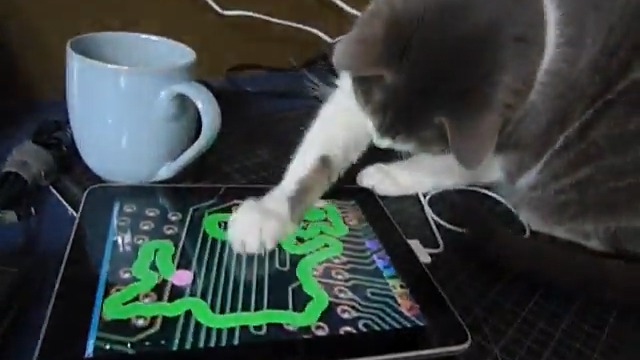 Кошка играет с Ipad