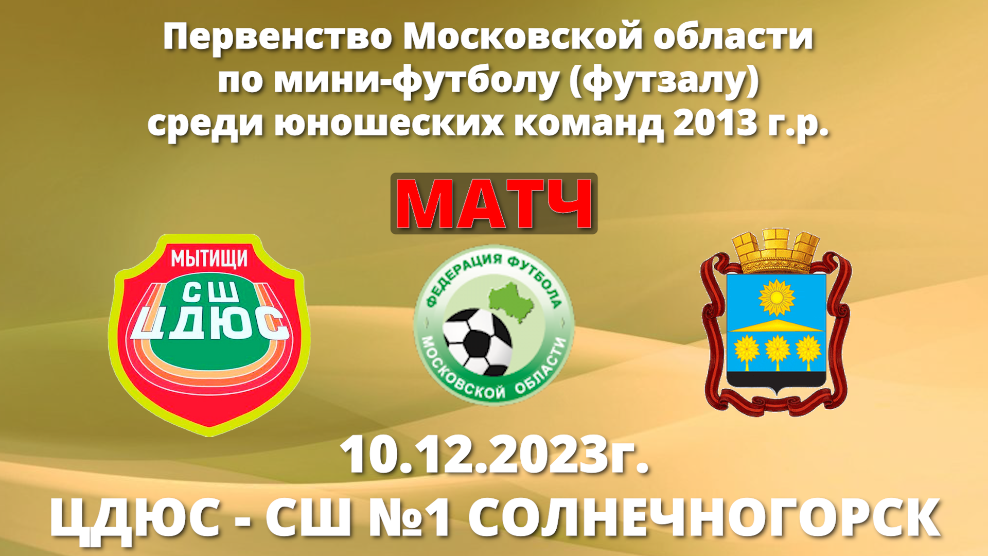 Матч! ЦДЮС-СШ №1(Солнечногорск) 10.12.2023г. Первенство Московской области по мини-футболу (футзалу