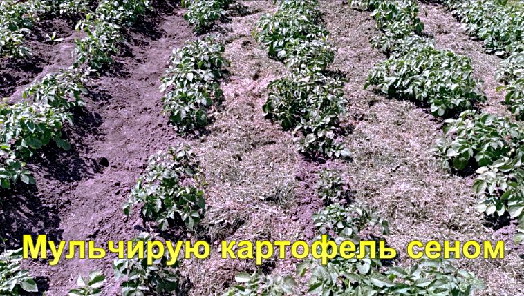 #После окучивания картофеля я обильно мульчирую его сеном.