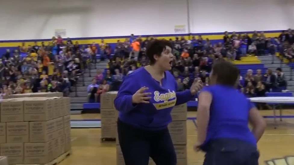 В американском штате Миннесота есть такая вот традиция: родителям в школе дают возможность сократить половину стоимости обучения за ребёнка путем нехитрого способа, наставнику необходимо попасть в корзину мячом с определенного расстояния. Вот одна из таких попыток :)