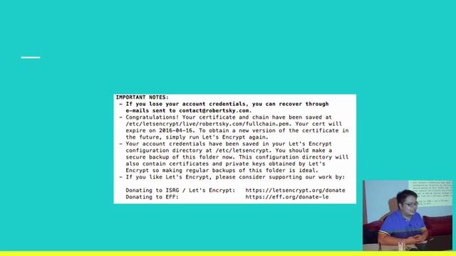 Speaker: Robert Sim (@robertsky_) What is SSL and why is it important. Also will touch on deploying Let's Encrypt cert for dedicated/VPS hosted sites. Event Page: http://www.meetup.com/WordPress-Singapore/events/227589326/ Produced by Engineers.SG Help us caption & translate this video! http://amara.org/v/WCee/