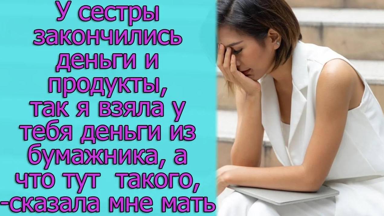 У сестры деньги закончились и продукты, так я взяла у тебя деньги из бумажника, а что тут такого