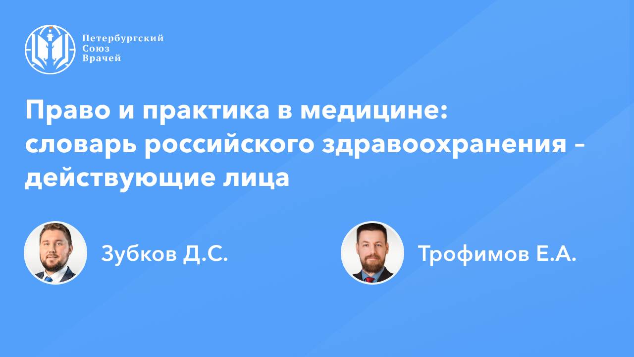 Право и практика в медицине: словарь российского здравоохранения – действующие лица Дата проведения: 05.03.2025, 20:00 Страница мероприятия: https://spb.doctor/i/250305/ Программа: 1. Право и практика в медицине: словарь российского здравоохранения – действующие лица Зубков Дмитрий Сергеевич 2. Что такое новые клинические рекомендации по гонартрозу и коксартрозу, зачем их внедряют, чем это обернется для пациентов и врачей Зубков Дмитрий Сергеевич, Трофимов Евгений Александрович 3. Ответы на вопросы О семинаре: В онлайн-семинаре будут обсуждаться термины и определения системы здравоохранения, нормативное обеспечение системы здравоохранения. Также будут освещаться юридические аспекты, связанные с данными вопросами.