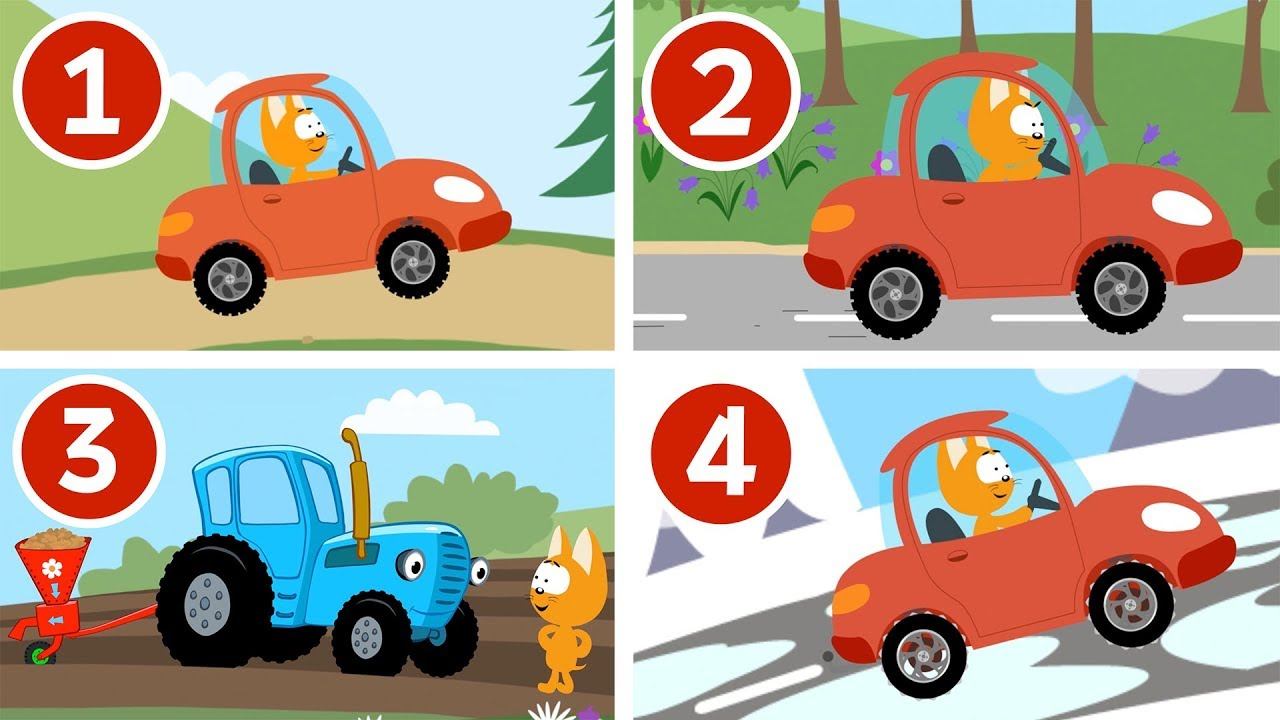СБОРНИК ВСЕ 4 СЕРИИ ПОДРЯД - Котенок и волшебный гараж - Мультфильм про машинки и Синий трактор