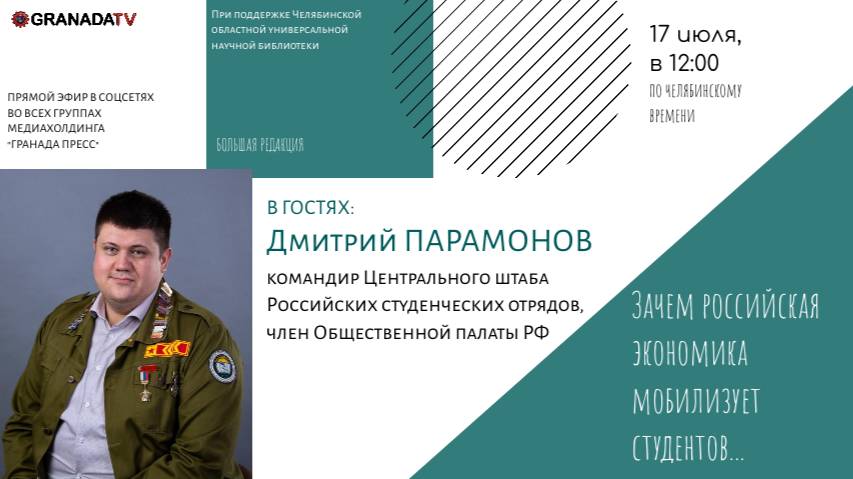 В гостях «Большой редакции» Дмитрий Парамонов, командир Центрального штаба Российских студенческих отрядов