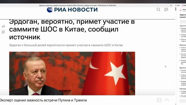 Эрдоган, вероятно, примет участие в саммите ШОС в Китае, сообщил источник -16.08.2025