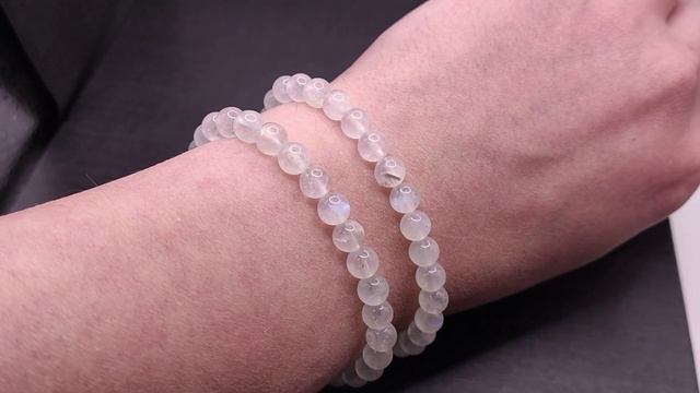 Браслет из бусин: Лунный камень. На резинке. Место добычи - Индия. 100% природный камень, без облагораживания. Размер бусин: ~6,7 мм. На запястье в обхвате: 1) - 17 см 2) - 18 см Б106