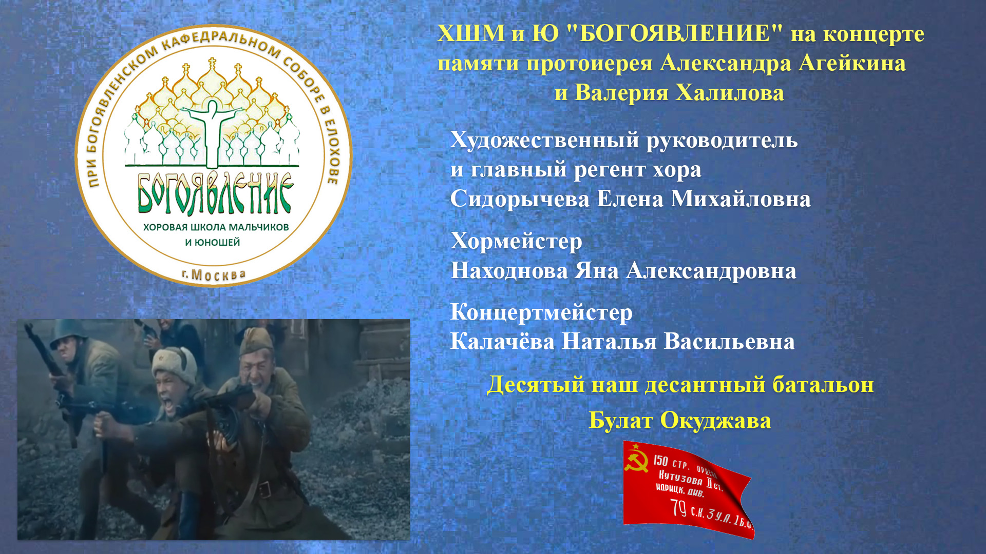 ХШМ и Ю "БОГОЯВЛЕНИЕ" на концерте памяти протоиерея Александра Агейкина и Валерия Халилова поет песню "Десятый наш десантный батальон"- 31.05.2022 г.