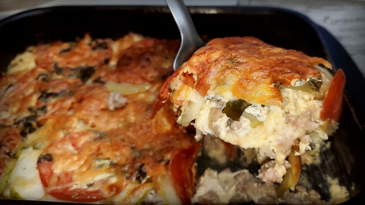 Запеканка с фаршем, кабачками и помидорами / Быстро, просто, вкусно!