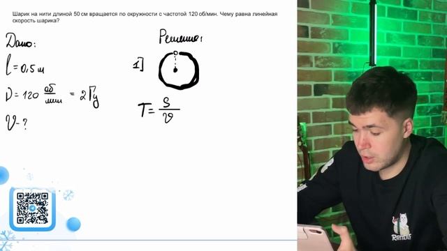 Шарик на нити длиной 50 см вращается по окружности с частотой 120 об_мин. Чему равна - №20670