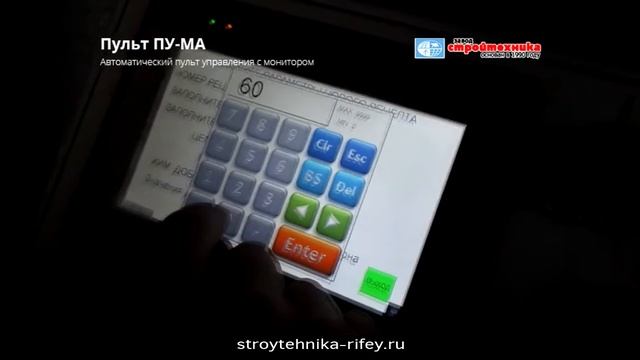 Пульт управления ПУ-МА с цветным сенсорным дисплеем позволяет оператору бетонного завода легко управлять как в ручном, так и в автоматическом режиме, сохранять и в дальнейшем использовать несколько рецептов бетона, следить за количеством замесов и расходом материалов ПУ-МА-https://stroytehnika-rifey.ru/catalog/dopolnitelnoe-oborudovanie/pult-upravleniya-pu-ma.html