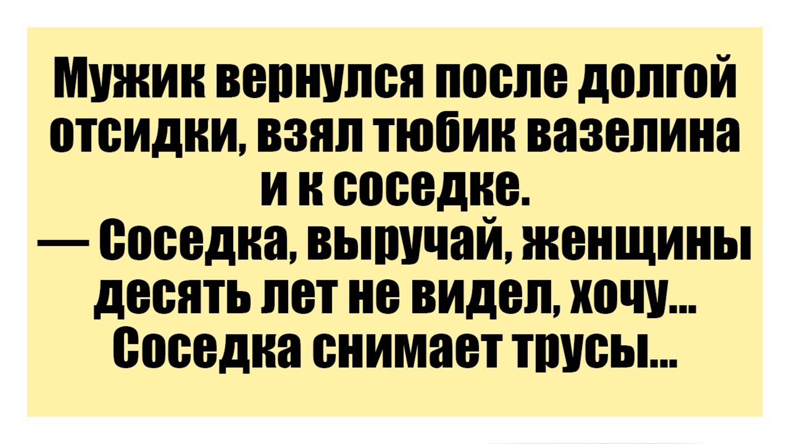 Мужик вернулся после долгой отсидки, взял тюбик вазелина и к соседке -Смешные анекдоты