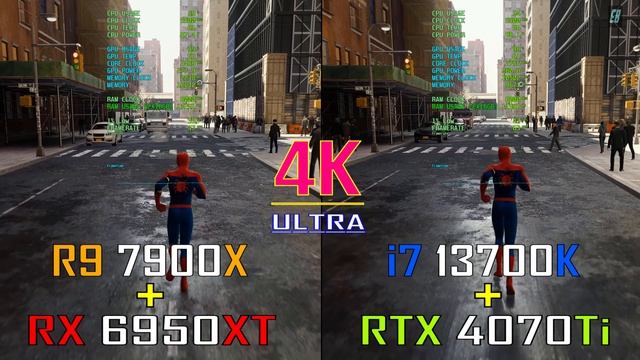 RTX 4070Ti +INTEL i7 13700K vs RX 6950XT + RYZEN 9 7900X // PC GAMES BENCHMARK TEST // 2160P || #rtx4070ti #i713700k #rx6950xt #ryzen97900x SYSTEM :- OS Windows 10 pro CPU INTEL i7 13700K MOBO Asus ROG Strix Z790 - E Gaming CPU RYZEN 9 7900X MOBO MSI MEG X670E ACE COOLER Corsair ICUE H150I ELITE GPU Asus TUF Gaming RTX 4070Ti 12GB GPU ASUS ROG Strix AMD Radeon RX 6950XT 16GB SSD Samsung 980 PRO 2TB PCIe 4.0 NVMe M.2 HDD WD Blue 4TB Desktop Hard Disk Drive PSU Corsair HX1500i 1500 Watt 80 Plus Platinum RAM Corsair Dominator 32GB DDR5 6000MHz THANK YOU FOR WATCHING-- Your support is very important, please like and subscribe to the channel. Теги: benchmark test,fps test,intel vs ryzen,amd vs nvidia,radeon vs geforce,4k gameplay,4k benchmark,ryzen vs intel,1080p gaming,4k gaming,4k gaming benchmark,exploring benchmark,explore benchmark,benchmark,rtx 4070ti,4070ti,rx 6950xt,6950xt,4070ti vs 6950xt,6950xt vs 4070ti,intel i7 13700k,i7 13700k,13700k,ryzen 9 7900x,7900x,13700k vs 7900x,7900x vs 13700k,13700k + 4070ti,4070ti + 13700k,6950xt + 7900x,7900x + 6950xt,new driver
