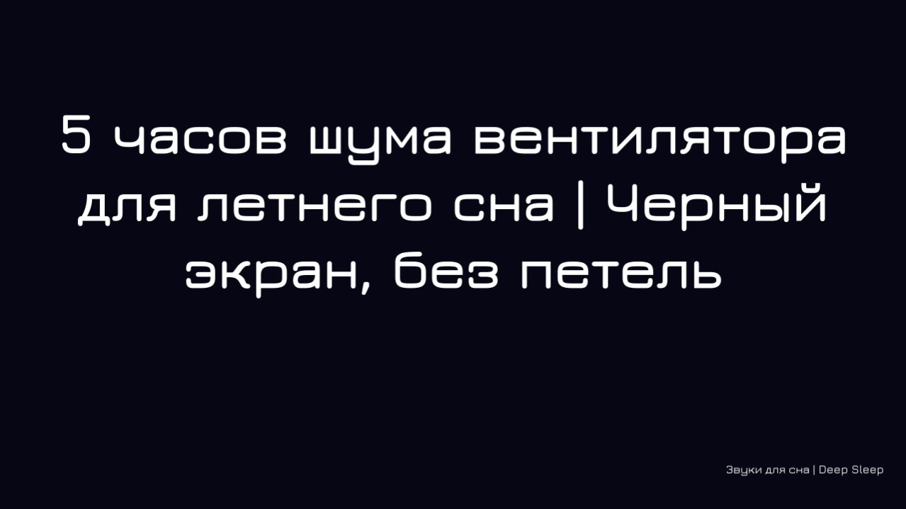 🌀 Летняя ночь, душно и не спится? Ровный, монотонный гул вентилятора создает ощущение прохлады и уюта, помогая расслабиться и забыть о жаре. Этот классический белый шум мягко маскирует посторонние звуки и погружает вас в глубокий, освежающий сон. 🔹 Полная 5‑часовая версия с чёрным экраном, без петель и затуханий – только чистый, непрерывный звук вентилятора, который не прервёт ваш отдых. 📥 Если хотите слушать без рекламы и скачивать видео в высоком качестве, заходите на Boosty: https://boosty.to/deep_noise_sleep Подписывайтесь на канал и пишите, спасает ли вас вентилятор в жаркие ночи! 🌙 Евгений / Deep Noise Sleep Теги: шум вентилятора, вентилятор, для сна, летний сон, 5 часов, глубокий сон, релаксация, белый шум, фоновый шум, прохлада, звуки для сна, черный экран, без рекламы, скачать, fan noise, summer sleep