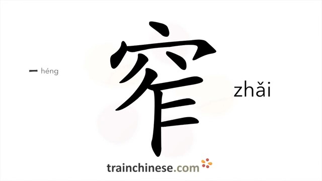 窄 (zhǎi) narrow; petty; to hard up