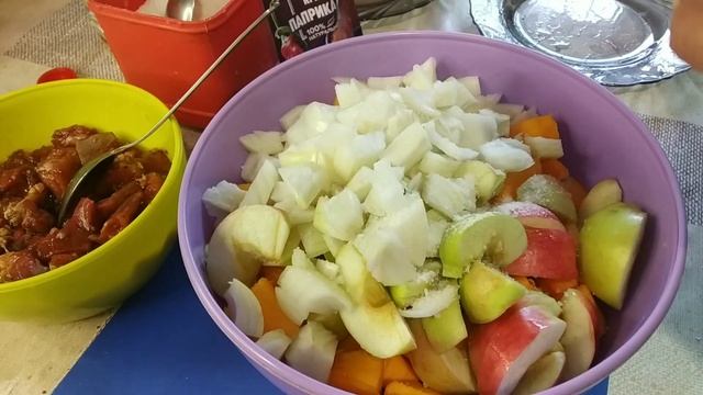 Всем привет 😊. Меня зовут Оксана и я люблю готовить. Если Вам понравился мой рецепт, поделитесь им с друзьями и подписывайтесь на мой канал. Тыква с мясом 800 гр тыквы 350 гр свинины 2 луковицы 4-5 зубч чеснока 4 яблока ( у меня очень маленькие) соль паприка копчёная смесь перцев 2 ст л растит масла 2 ст л соевого соуса 100 мл воды зелёный лук сметана Запекаем в разогретой духовке при температуре 180° 45-50 минут. Приятного аппетита 😋😋 #тыквасмясом#полезныйужин#ялюблюготовить# Для желающих поддержать мой канал Сбер 4817 7603 1908 0713 Оксана Мих К