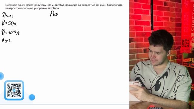 Верхнюю точку моста радиусом 50 м автобус проходит со скоростью 36 км_ч. Определите - №37160