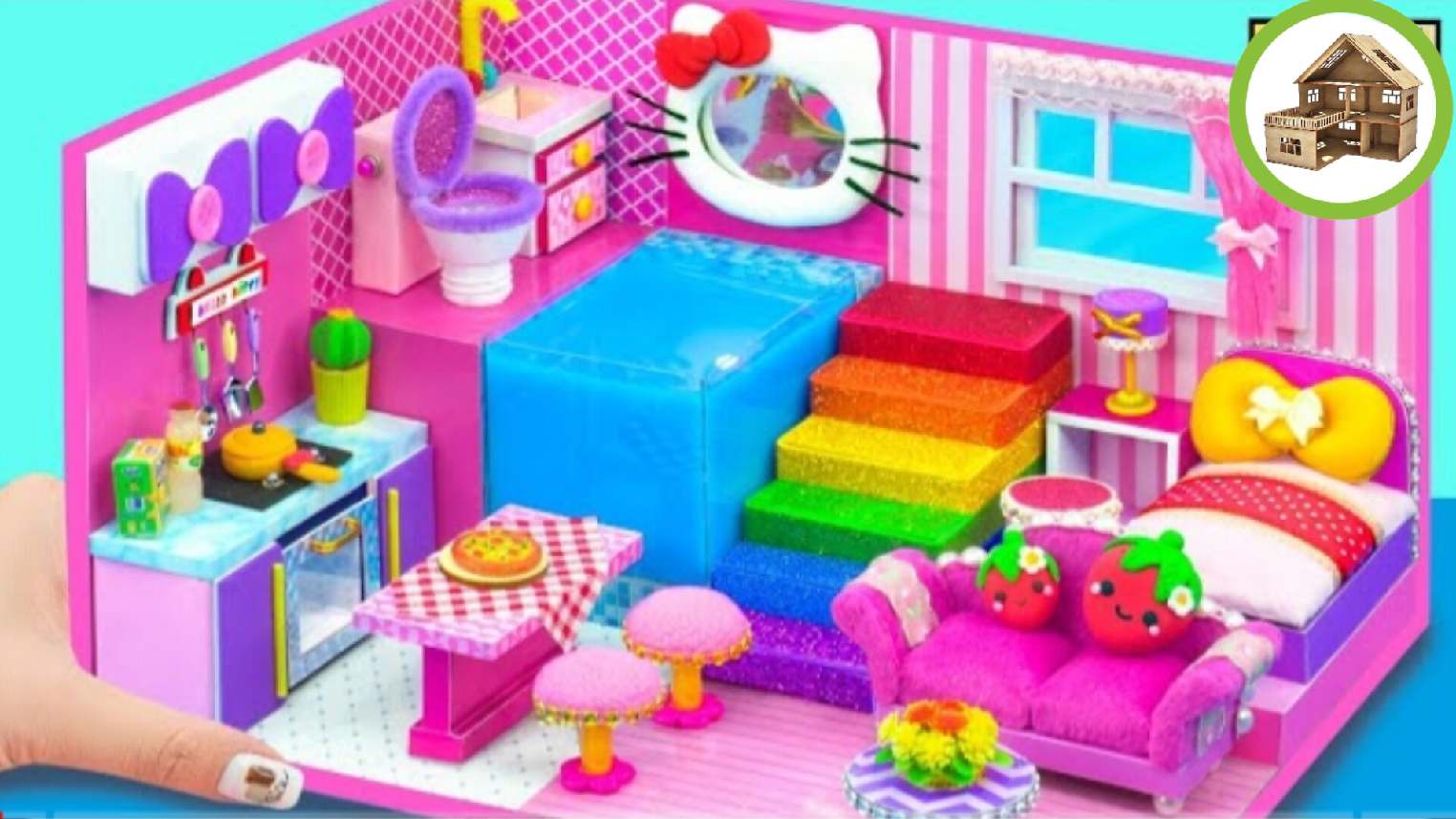 Миниатюрный домик для семьи симпотичная комната кухня и бассейн из картона /193