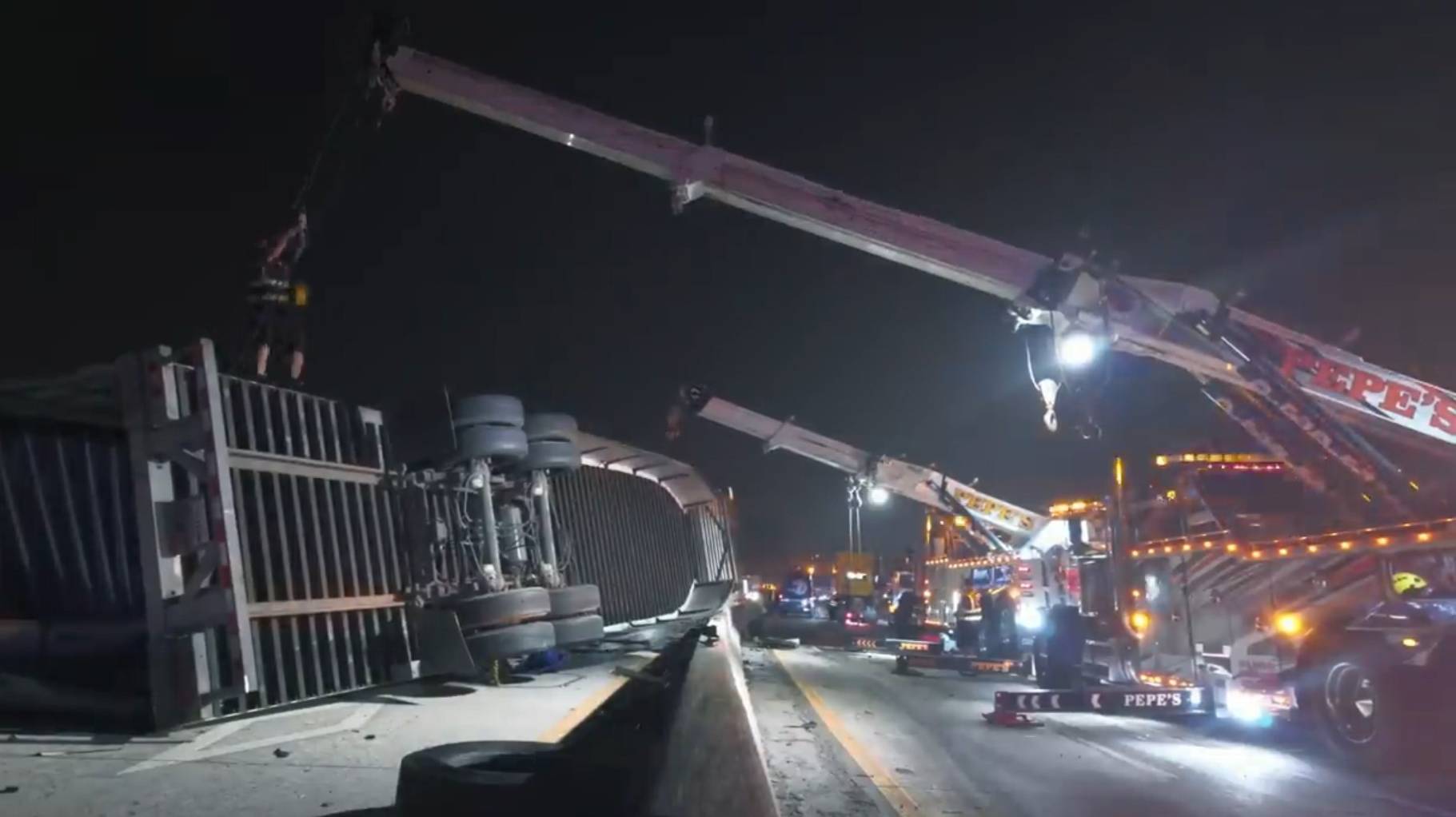 Трейлер перекинуло через ограничитель на встречку. Наши парни едут его убирать.