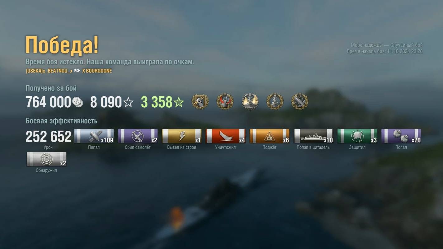 Линкор Bourgogne Игрок: x_BEATNGU_x (NA) Карта: Море надежды - Случайный бой Урон: 252к Bourgogne - Линкор Франции 10 уровня