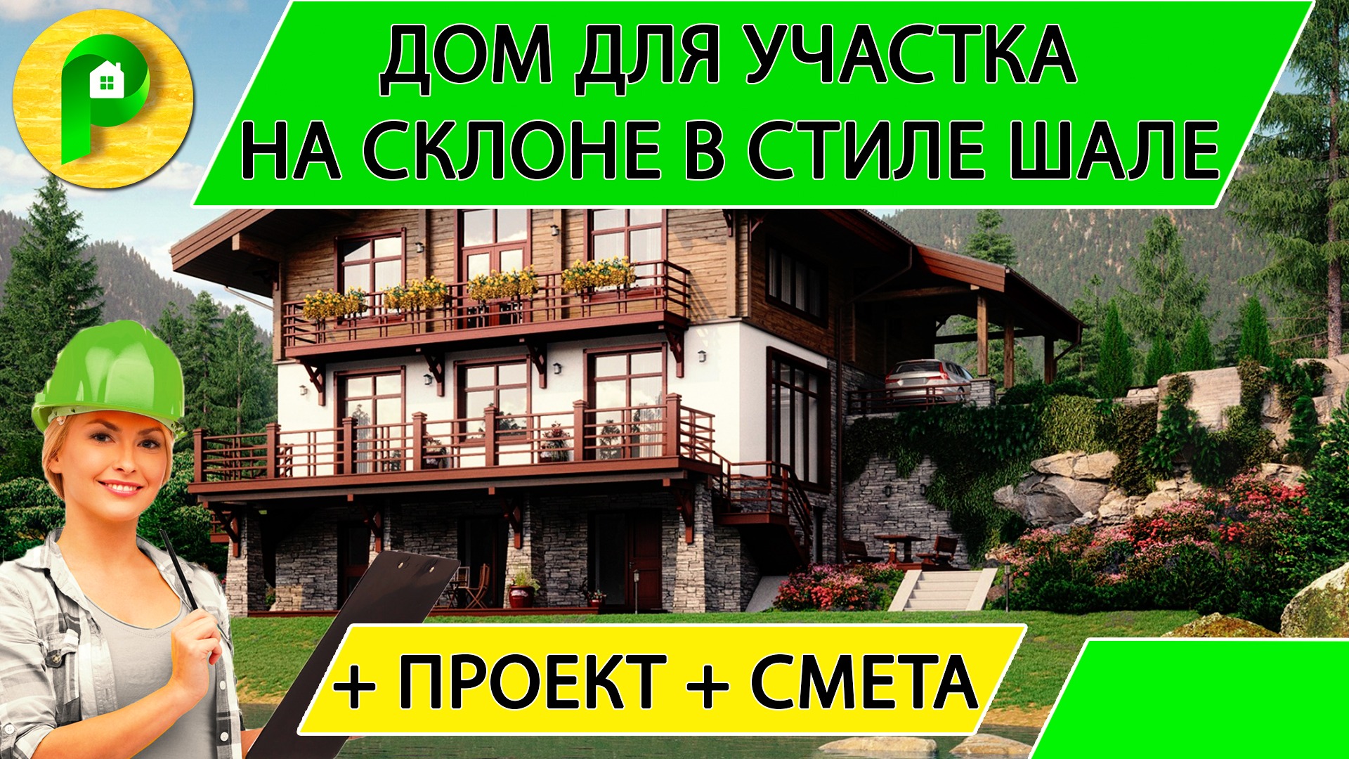 Комбинированный дом в стиле шале для участка на склоне с большим перепадом Ремстройсервис М 384