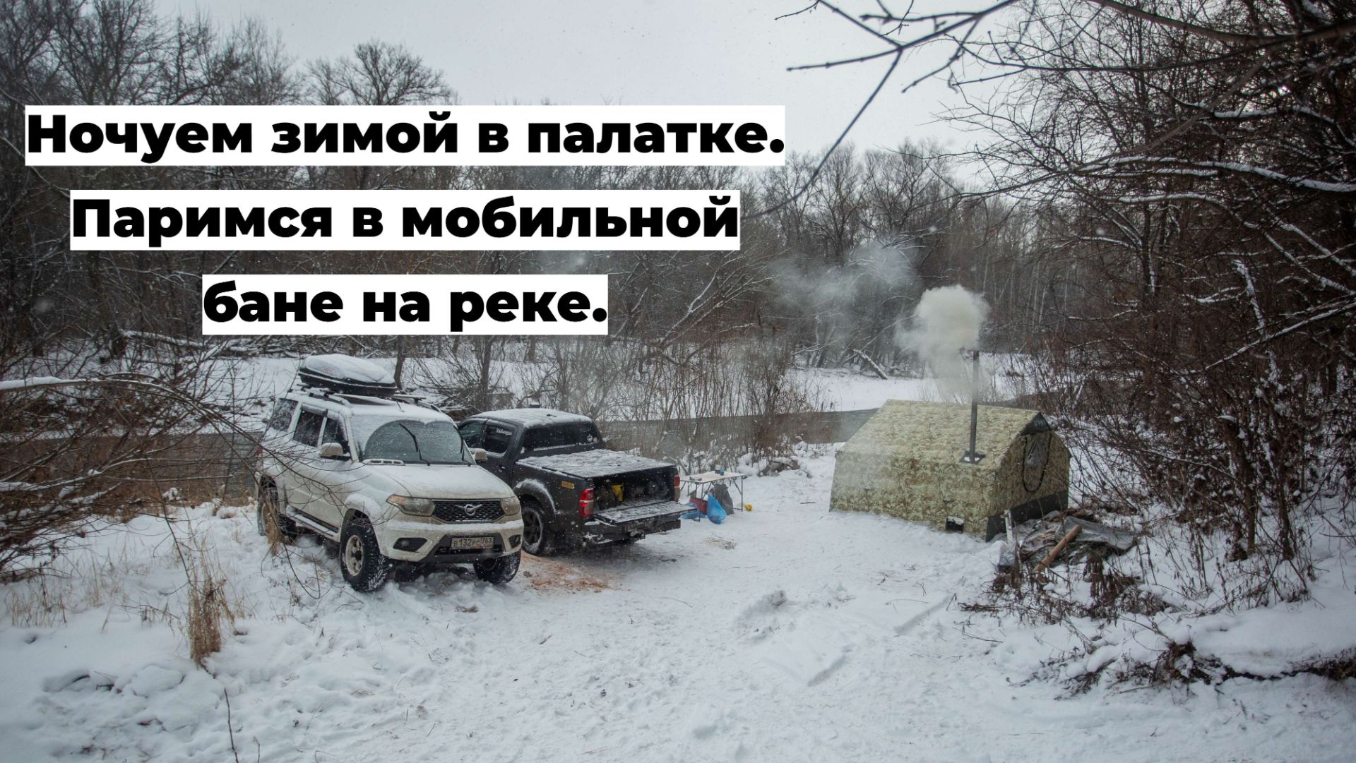 Ночуем зимой в палатке. Мобильная баня на реке. Предновогодние парения 2025-2026г.