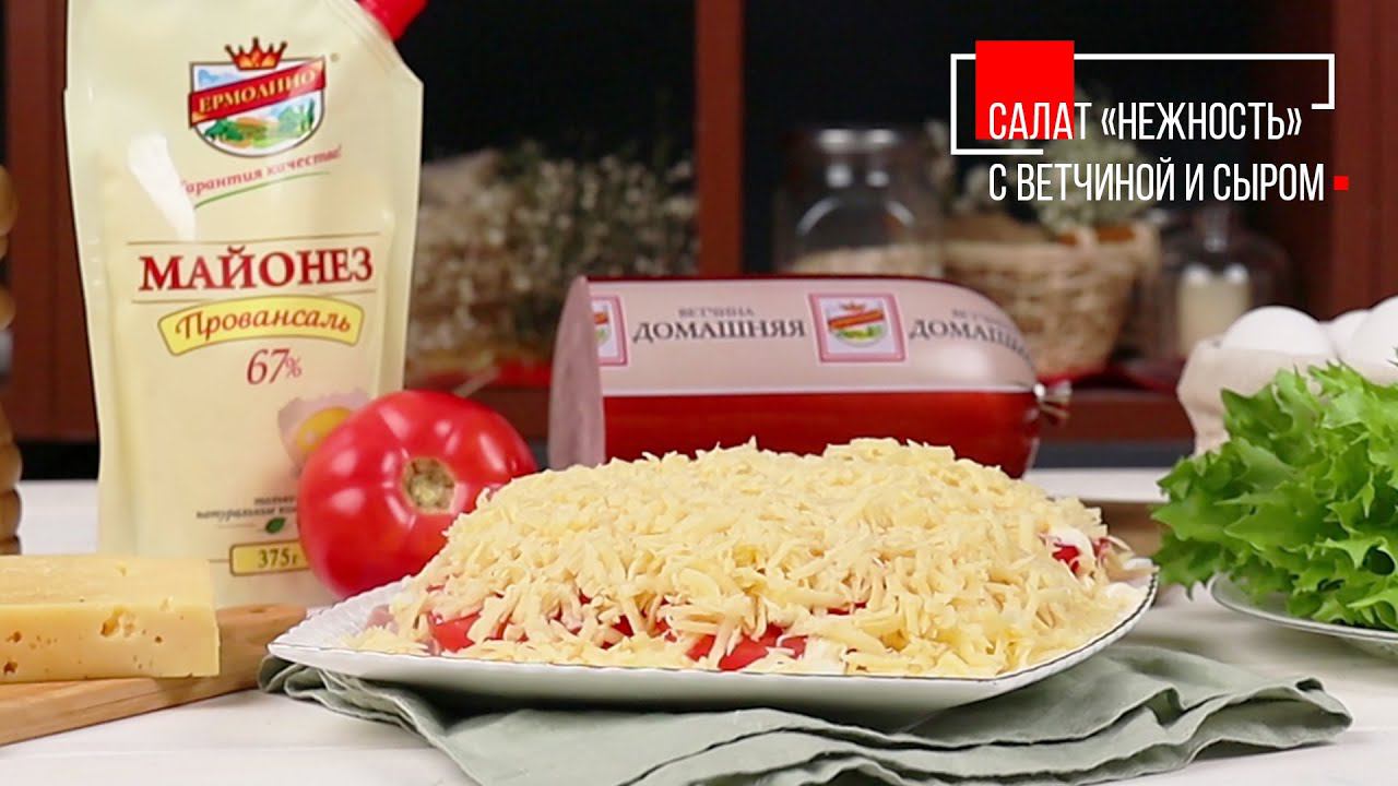 САЛАТ «НЕЖНОСТЬ» С ВЕТЧИНОЙ И СЫРОМ | ПРОДУКТЫ ЕРМОЛИНО – Вкусные рецепты