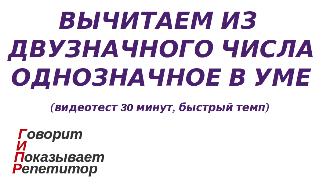 ГИПР - Вычитаем из двузначного числа однозначное в уме, видеотест 30 минут, быстрый темп