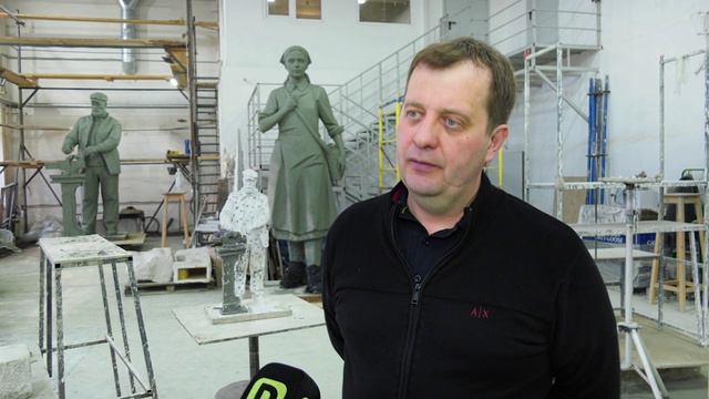 Создание стелы "Дзержинск - город трудовой доблести" в мастерской скульптора Алексея Щитова