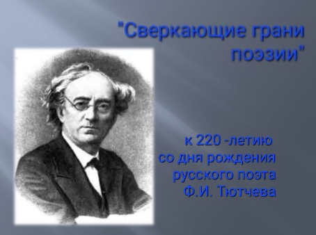 5 декабря исполняется 220 лет со дня рождения одного из знаменитых русских поэтов, внесших огромный вклад в развитие лирического поэтического направления, Федора Ивановича Тютчева. Лев Толстой писал: «когда-то Тургенев, Некрасов… едва смогли уговорить меня прочесть Тютчева, но зато когда я прочел, то просто обмер от величины его творческого таланта». Толстой называл его среди своих любимых поэтов, говорил, что «без него нельзя жить». С творчеством поэта знаком каждый школьник, его поэзия знакома всем. Мы с удовольствием читаем его стихи и сейчас. Ивановская сельская библиотека-филиал№15 приглашает вспомнить поэзию Ф. И. Тютчева и получить наслаждение. Подготовлено главным библиотекарем Ивановской сельской библиотеки-филиала№15 Н.А. Варфоломеевой