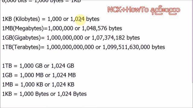 The difference between Bits/Bytes/KB/MB/GB/TB ( Myanmar)
