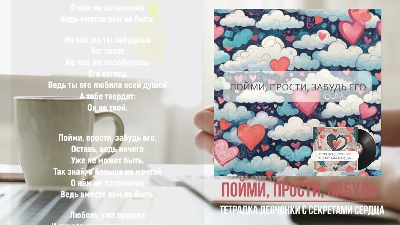 "Пойми, прости, забудь его"- музыкальный трек с альбома "Тетрадка девчонки с секретами сердца" AnaSM, 2024 ПОЙМИ, ПРОСТИ, ЗАБУДЬ ЕГО Ты его любила Он тебя Вовсе не любил Никогда Ты его любила, Но забудь Прежнего уже Не вернуть. Пойми, прости, забудь его. Оставь, ведь ничего Уже не может быть. Так знай, и больше не мечтай О нём не вспоминай Ведь вместе вам не быть. Но как же ты забудешь Тот закат Но как же позабудешь Его взгляд Ведь ты его любила всей душой А тебе твердят: Он не твой. Пойми, прости, забудь его. Оставь, ведь ничего Уже не может быть. Так знай, и больше не мечтай О нём не вспоминай Ведь вместе вам не быть. Любовь уже прошла И ничего не осталось в сердце От неё Любовь уже ушла Но всегда Ты будешь вспоминать Но тогда Пойми, прости, забудь его. Оставь, ведь ничего Уже не может быть. Так знай, и больше не мечтай О нём не вспоминай Ведь вместе вам не быть. #песня #альбом #новинки2024 #песни #музыкадлядуши #песнисосмыслом #музыка #пролюбовь #музыкальный трек #AnaSM #music #пишупесни
