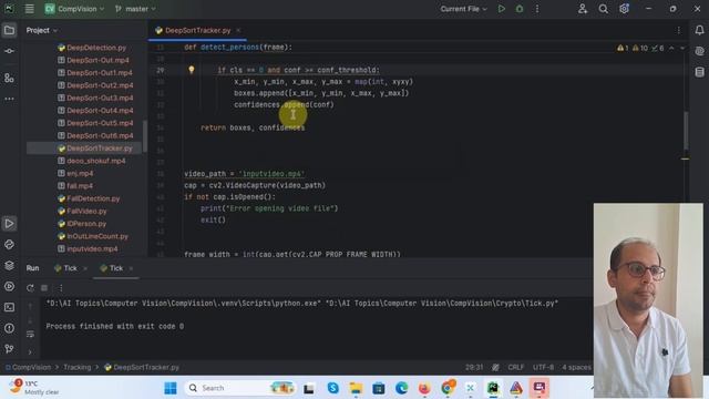 Если видео на английском ,а вы его не знаете , то смотрите через Яндекс браузер. код : https://github.com/VisionProgrammer-AI/Object-Tracking/tree/master
