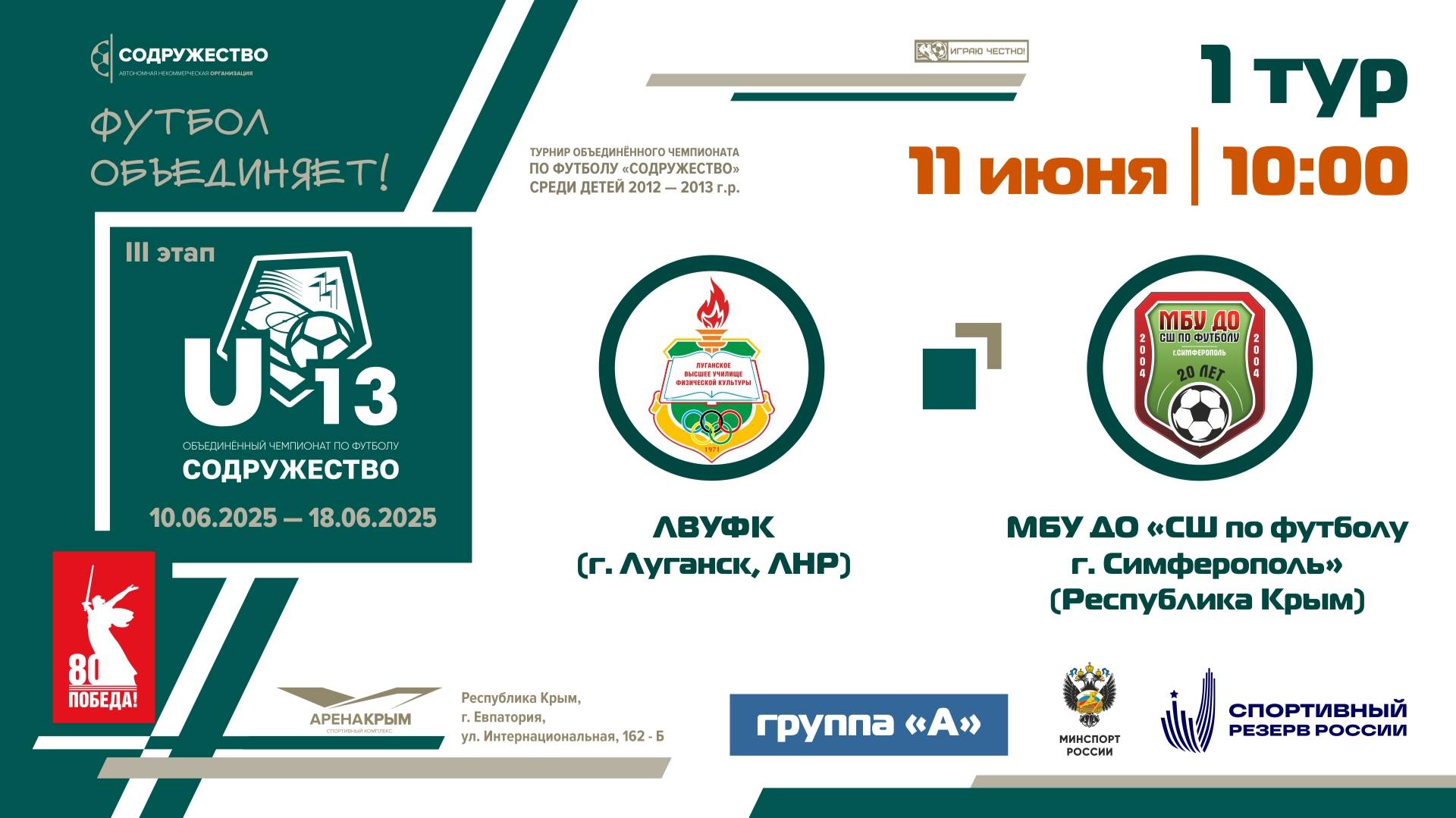 1 ТУР [Группа А] | ЛВУФК (г. Луганск, ЛНР) - МБУ ДО «СШ по футболу» (г. Симферополь)
