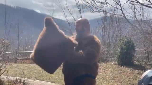 Чёрный медведь испугался человека в костюме медведя (u) - канал ViralHog