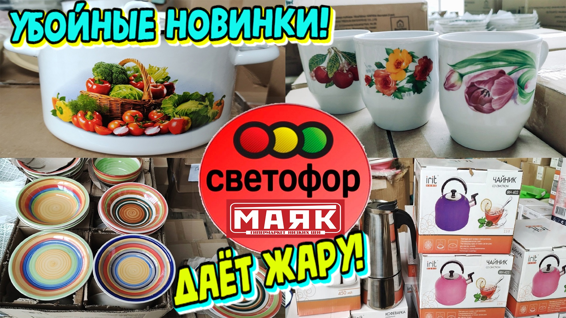 Вот это он понавёз. Большой Светофор - это Маяк.Горы посуды по очень низким ценам.Лучшие новинки августа в магазине низких цен.Честный обзор