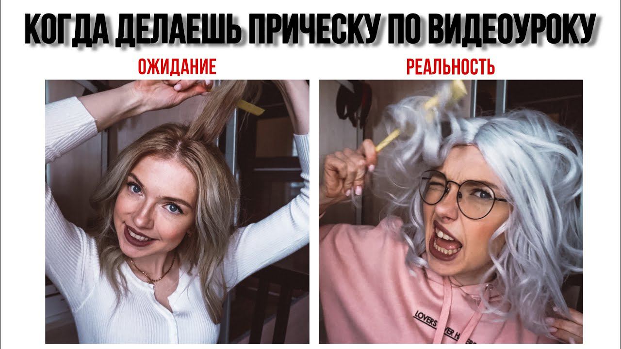 Пытаюсь сделать прическу по видеоуроку \ Ожидание и реальность \ Смешное видео \ ПРОБЛЕМЫ ВОЛОС