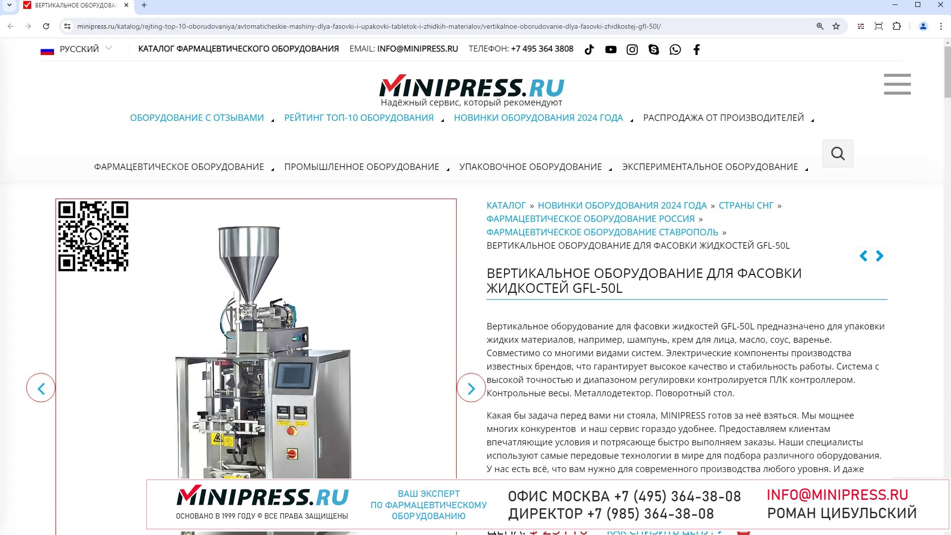 Minipress.ru Вертикальное оборудование для фасовки жидкостей GFL-50L