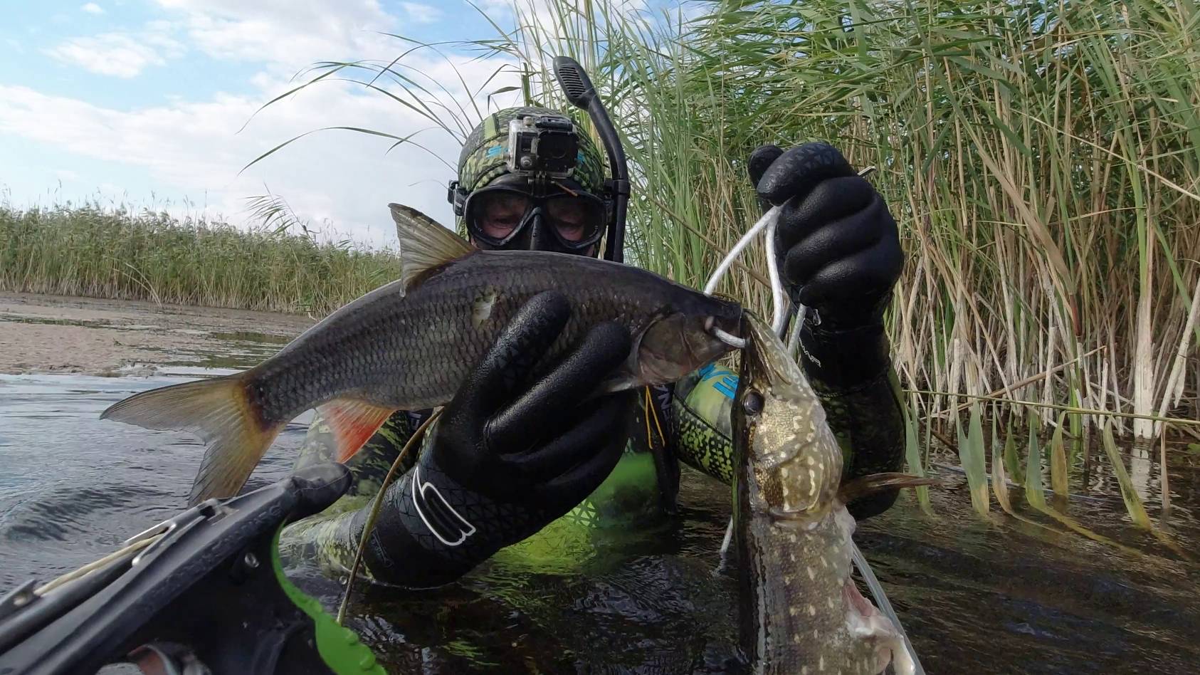 Подводная охота сплавом на малой реке с арбалетм осень