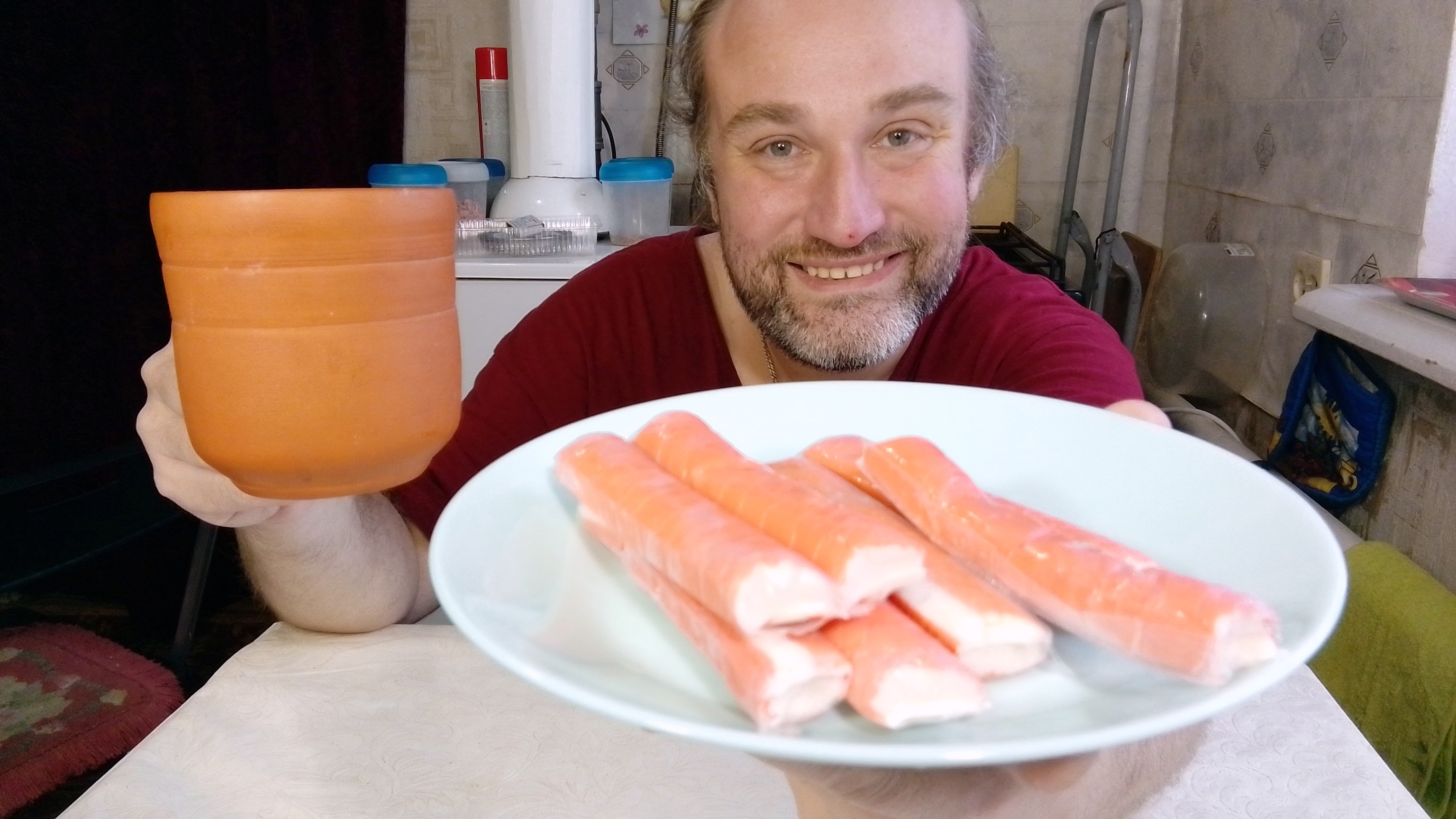 распаковка и завтрак с Рыжулей крабовые палки. мукбанг. обжор. еда на камеру. диета. шизофрения.