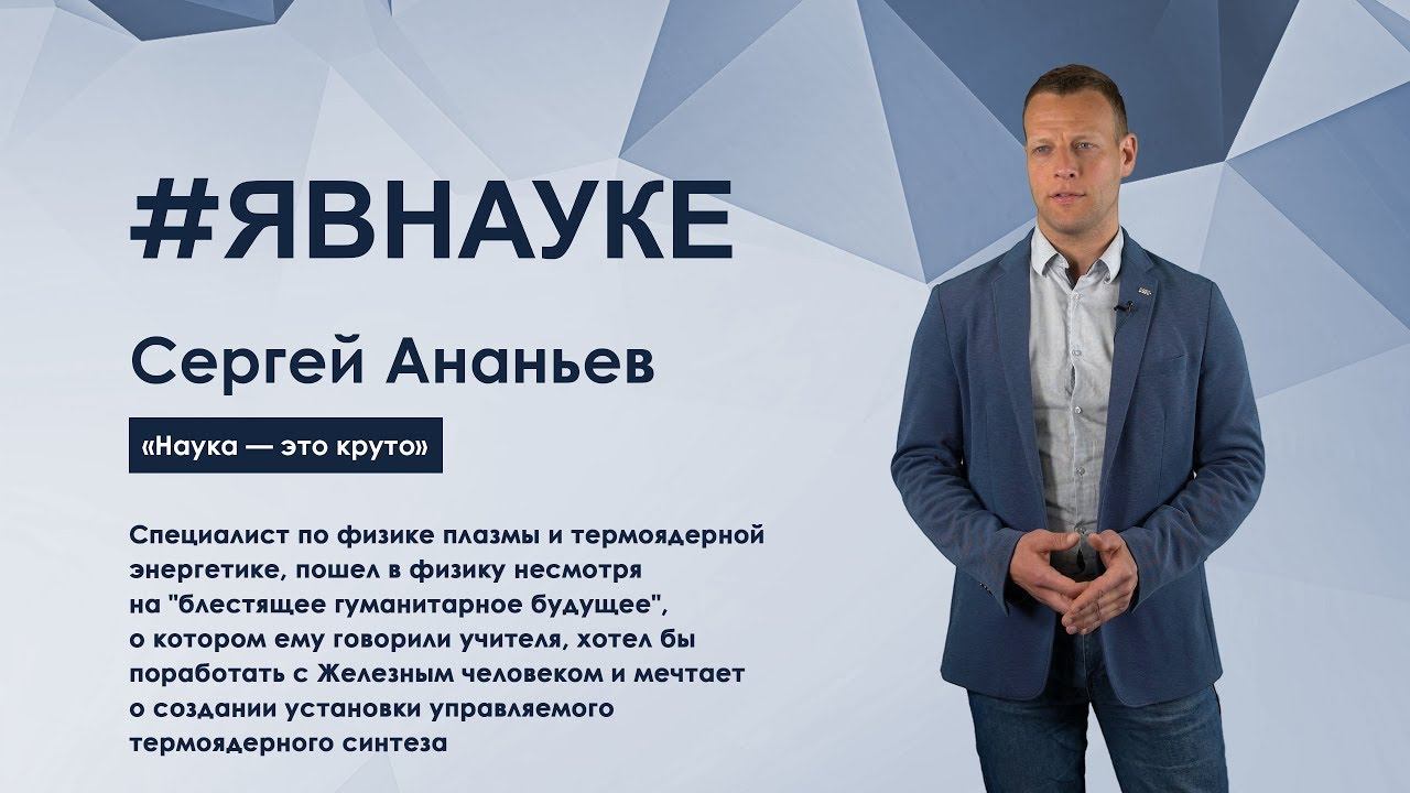 Сергей Ананьев: «Наука — это круто» Сергей Ананьев рассказывает, почему молодой ученый должен сам проявлять инициативу, быть смелым и активным, что такое гибридная энергетика и как термоядерный синтез может дать человечеству новый тип энергии