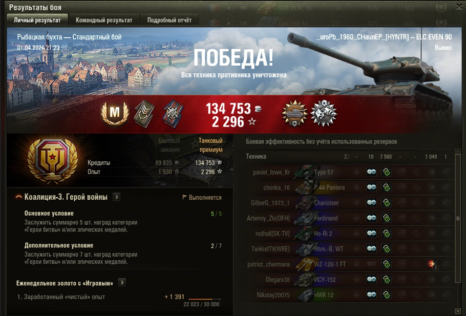 РЫБАЦКАЯ БУХТА МАСТЕР на ELC EVEN 90 ОПЫТ: 1391 СУММАРНЫЙ УРОН: 8609 медаль ДОЗОРНЫЙ