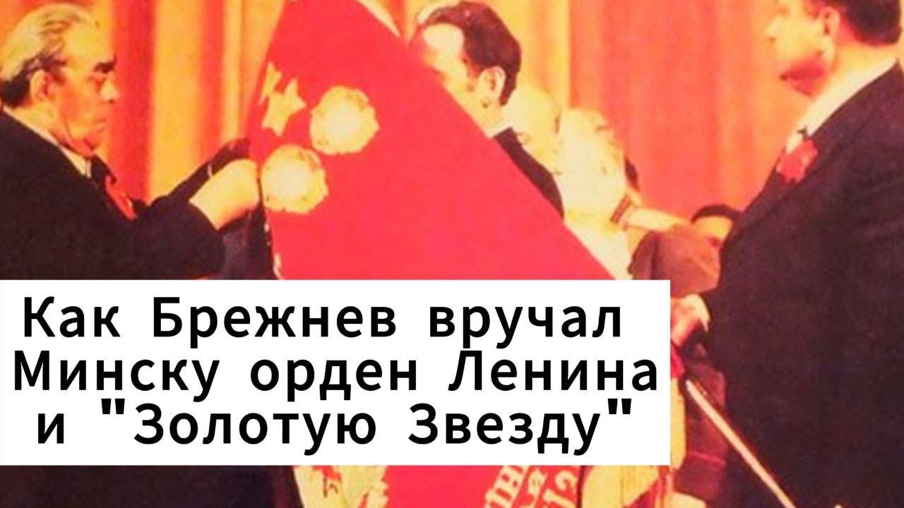 БРЕЖНЕВ в Минске: “Награды городам – это награды людям, которые их защищают и восстанавливают” 26 июня 1974 г. белорусской столице присвоено почетное звание "Город-герой", а также орден Ленина и медаль "Золотая Звезда". Через 4 года после этого - 25 июня 1978-го - в столицу БССР приехал генеральный секретарь ЦК КПСС, Председатель Президиума Верховного Совета СССР Леонид Брежнев. На торжественном заседании горкома КПБ и городского Совета народных депутатов в здании Большого театра оперы і балета он прикрепил к знамени города медаль «Золотая Звезда» и орден Ленина. В фондах Белорусского радио сохранилась уникальная запись этого исторического события.