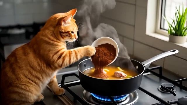 The kitten saved the polar bear and took it home to treat it to a big meal! #cat