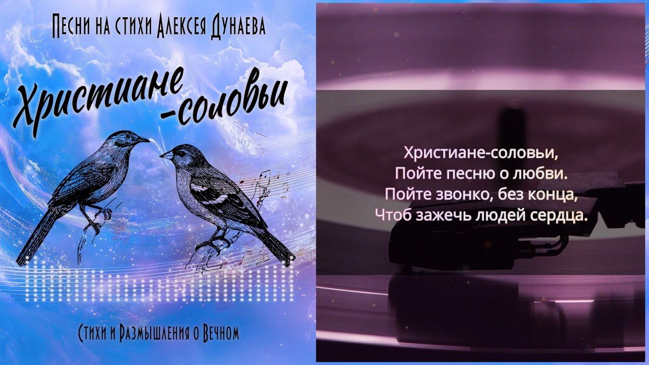 #христианскиепесни #христианскоекараоке #прославление Эта песня – гимн святой любви, которая пленяет красотой и зажигает свет в наших сердцах. Слова полны вдохновения и благодати, поднимая дух и напоминают о силе Божьей любви. Стихи: @lyosha.dunaev ХРИСТИАНЕ - СОЛОВЬИ Христиане-соловьи, Пойте песню о любви. Пойте звонко, без конца, Чтоб зажечь людей сердца. ПРИПЕВ: Песня о любви святой, Что пленила красотой, Зажигает жизни свет – Этой песни лучше нет. Эта песня – дар небес, В ней слова имеют вес. Нужно сердцем в них вникать – И познаешь благодать. Благозвучная она, Словно тихая волна, А по смыслу – глубока: В ней сокрыты облака. Христиане-соловьи, Пойте песню о любви. Пойте звучней с каждым днём, Этой песней мы живём. -------------------------------------------------------------------------------------------------------- Здравствуйте дорогие друзья! Большое спасибо, что посетили мой канал! Я пишу стихи и свои размышления о Боге, который изменил и продолжает менять мою жизнь! Если вам понравилось видео, не забудьте поставить лайк и подписаться на мой канал! ОГРОМНОЕ СПАСИБО за вашу поддержку! Мои стихи в соцсетях: https://www.youtube.com/@user-sm3pr8vu3f Телеграмм: https://t.me/AlexiyDunaev ВКонтакте: https://vk.com/public29520238 Facebook: https://www.facebook.com/Alexiy.Dunaev